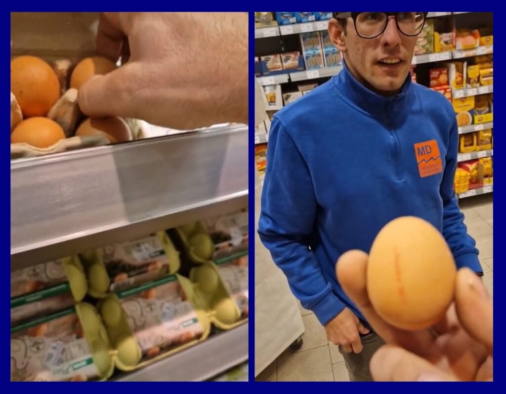Kako se vidi na snimku, muškarac prilazi polici na kojoj se nalaze jaja i pita prodavca gde se nalazi majka jajima.