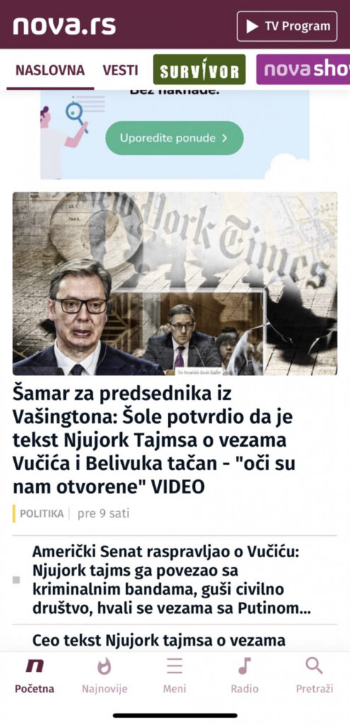 Predsedavajući Spoljnopolitičkog odbora Senata Bob Mendez, upitao je Šolea o „veoma optužujućem“ tekstu Njujork tajmsa o predsedniku Vučiću u kojem se govori o navodnoj povezanosti Aleksandra Vučića sa huliganima i organizovanim kriminalom.