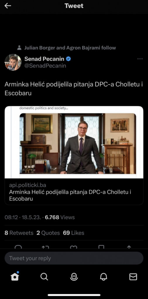 U pitanju je novinar Senad Pećanin, najveći promoter teze da su Srbi počinili genocid.