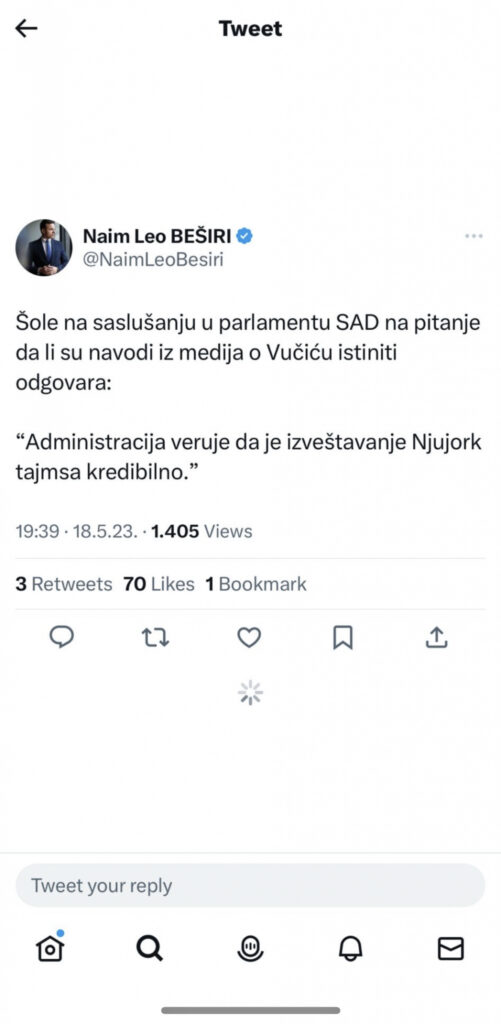 Još jedan od glasnogovornika i promotera blokada Srbije, Naim Leo Beširi sada promoviše ovaj gnusni napad na Srbiju.