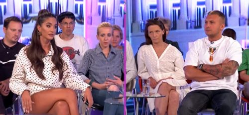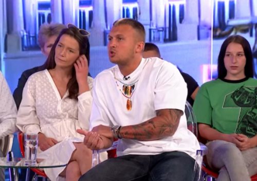 Tokom reklama, Anđela se povukla da bude sama – nervozno je kucala poruke na telefonu i držala se po strani, dok je Karić ostao da sedi i razgovarao sa ostalima.