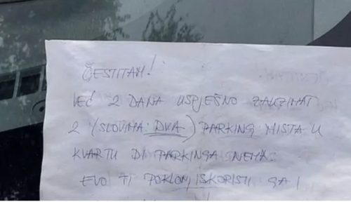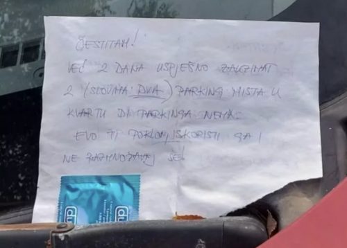 Jedan takav vozač razljutio je čitateljku Dalmatinskog portala kojoj se smučilo njegovo besramno zauzimanje mesta, pa je odlučila da mu ostavi poseban „poklon“ i poruku ispod brisača.