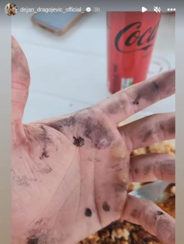 Dejan je objavio pomenuti video, a na njemu se jasno može videti kako je njegovu šaku zhvatila garež, uz žuljeve i plikove u predelu dlana.