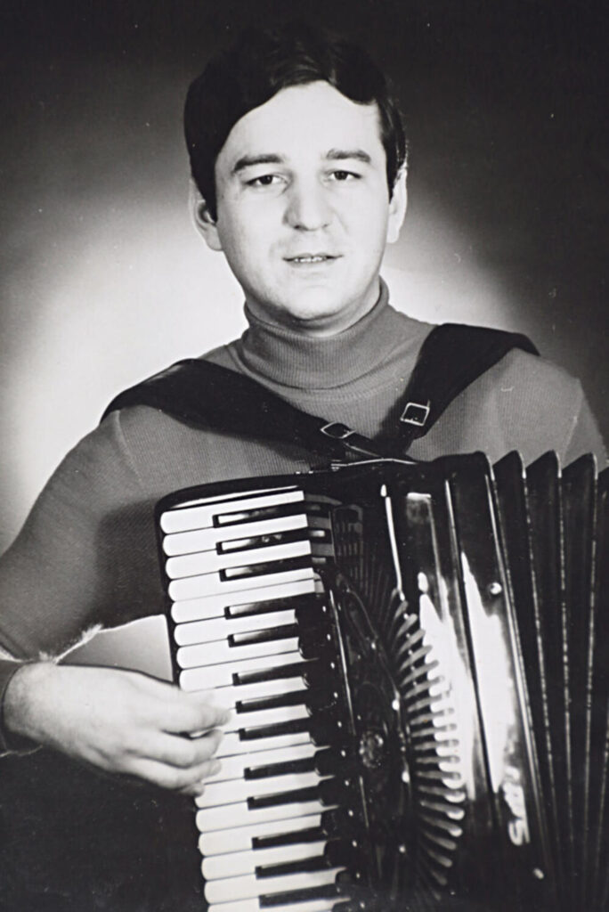 Posle srednje škole strašno me je vukla harmonika. To je bilo do te mere da mi je obeležilo život. Oduvek sam svirao harmoniku, ali u srednjoj školi glavni uporedni predmet bio je klavir, svako je morao ponešto da zna, ne da svira kao pijanista, ali osnovno da. Kad sam to priveo kraju, sve je išlo po redu. Ušao sam u KUD „Vukica Mitrović“, koje je bilo pri fabrici „Beko“ na Kalemegdanu. Tu počinjem da sviram svaki dan od jedan po podne do deset uveče i dolazi vratar da me istera jer se zatvara fabrika. Ja mokar sav, sviram na društvenoj harmonici, polako čekajući jednu koja mi je značila i znači mi i danas više od života…