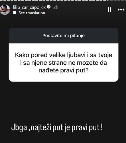 „Je*iga, najteži put je pravi put“, odgovorio je po malo smoreno.