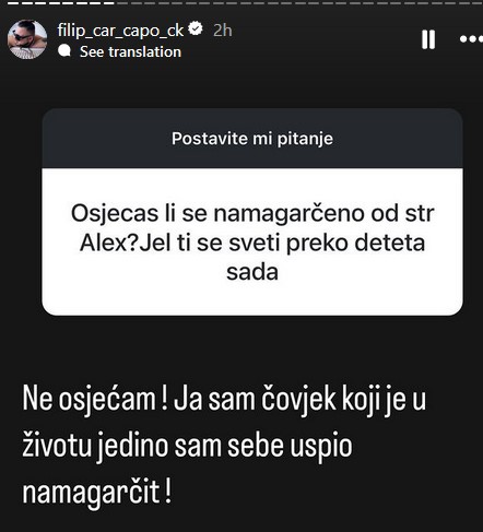 Pitali su ga i da li se oseća namagarčeno od strane Aleks, kao i da li mu se sveti preko deteta?