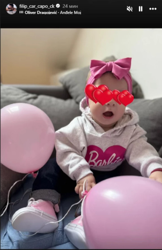 Filip se danas oglasio na društvenoj mreži Instagram i podelio fotke male Leone. Prvo je objavio njenu fotku uz pesmu Olivera Dragojevića „Anđele moj“.
