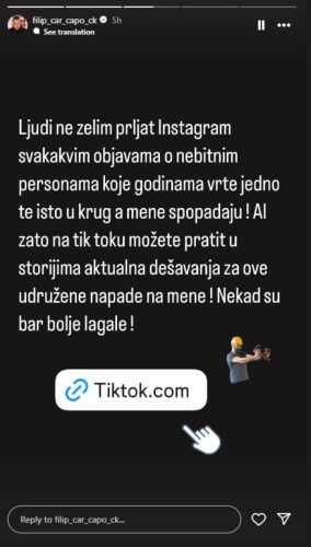 – Ljudi, ne želim da prljam Instagram svakakvim objavama o nebitnim personama koje godinama vrte jedno te isto u krug, a mene spopadaju! Na TikToku možete pratiti aktuelna dešavanja za ove udružene napade na mene! Nekad su bar bolje lagale – poručio je on.