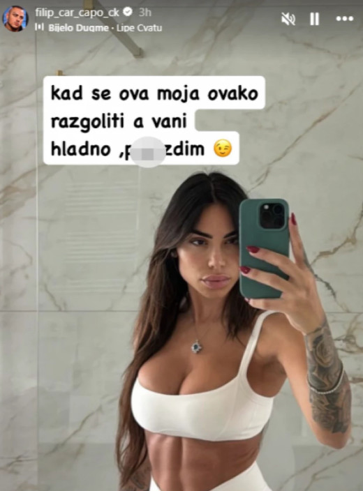 Ovaj put, on je podelio fotografiju na kojoj je Monika Gunela, Italijanka poznata javnosti kao kreatorka i influenserka. Monika je na slici pozirala u izazovnom izdanju, što je, kako je Car naveo u svom komentaru, izazvalo kritiku njenog momka.
