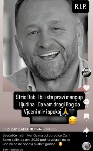 „Stric Robi! Bili ste pravi mangup i ljudina. Da vam dragi Bog da večni mir i spokoj“, stoji u opisu objave.