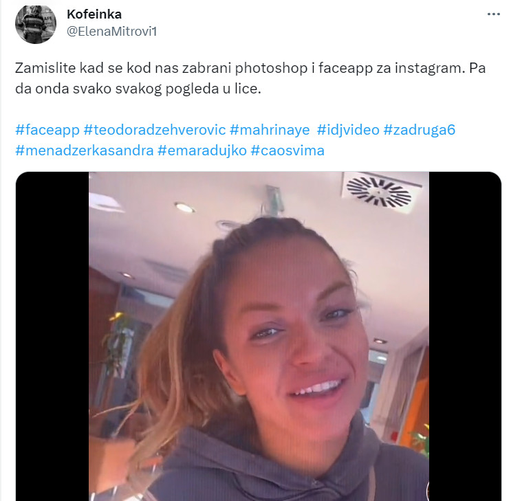 Nedavno se na Twitteru pojavio video klip koji prikazuje kako Teodora zaista izgleda bez šminke, što se znatno razlikuje od slika koje možemo videti na njenim profilima na društvenim mrežama.