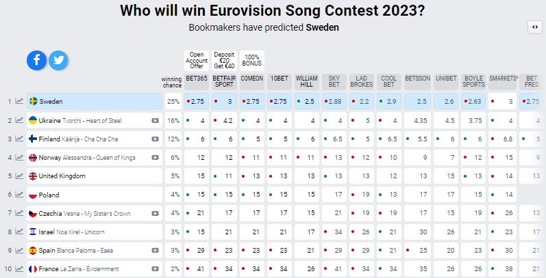 Na kladionicama, Käärijä je trenutno na trećem mestu, ali preti da će se popeti i srušiti Ukrajinu sa drugog mesta. Sve u svemu, Finska je ponosna na svog predstavnika i očekuje se veliki uspeh na takmičenju u maju.