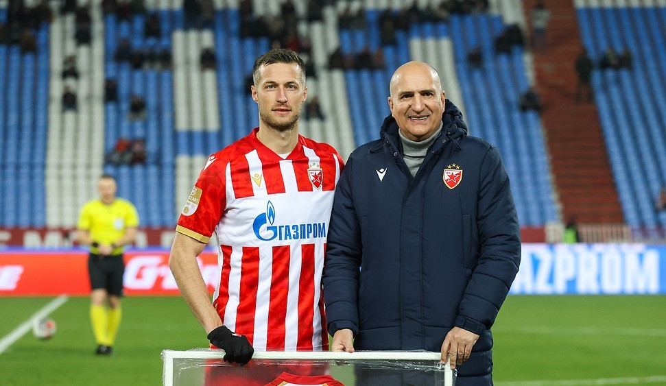 Novi fudbaler Crvene zvezde u klubu 100 je kapiten – Uroš Spajić. Lideru crveno-belog tima je simboličan dres pred utakmicu zaostalog šestog kola Superlige Srbije uručio sportski direktor kluba – Mitar Mrkela.