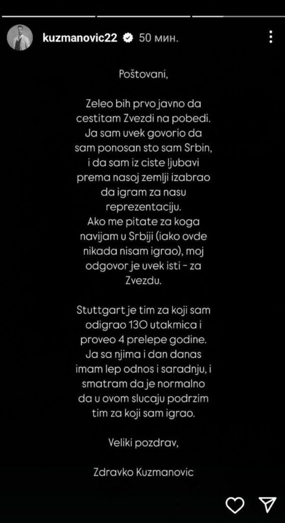 Zdravko Kuzmanović – napisao je on na svom Instagram profilu.