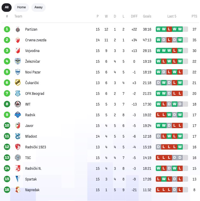 SUPERLIGA SRBIJE – 15. KOLO