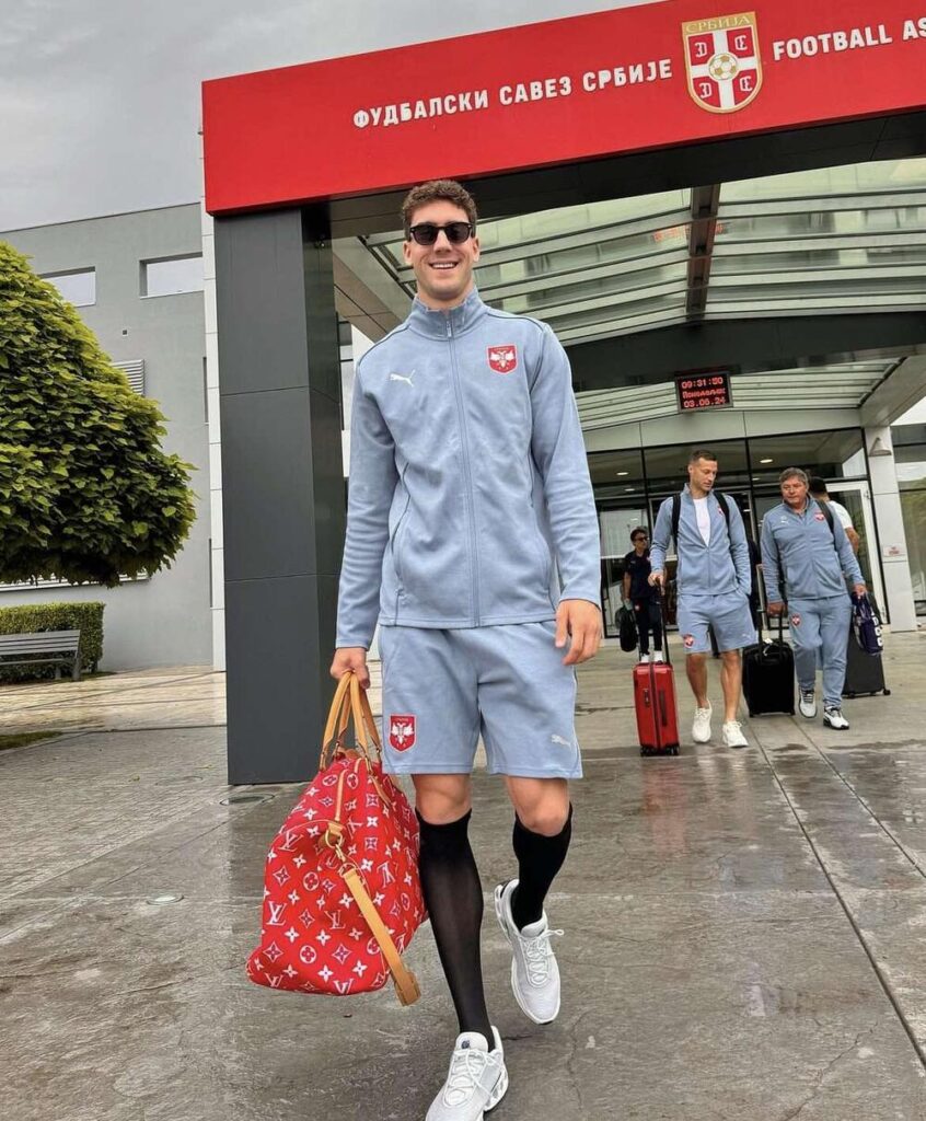 Naš reprezentativac je juče sa našim timom otputovao u Beč, gde ih večeras očekuje prijateljski meč sa Austrijom. Tom prilikom Dušan je poneo i zanimljiv stajling. Ono što je svima privuklo pažnju jesu njegove crne dokolenice, ali ne one fudbalerske već crne najlon čarape. Dok je u ruci umesto kofera koji su svi vukli ili sportskog ranca, nosio crvenu torbu marke “luj viton”, čija je cena neverovatnih 10.000 evra. Za nju se priča da je jedna od najskupljih u ponudi prestižnog francuskog brenda. U pitanju je model “spidi P9” u veličini 50 i može se koristiti kako za putovanja, tako i za svakodnevne potrebe.
