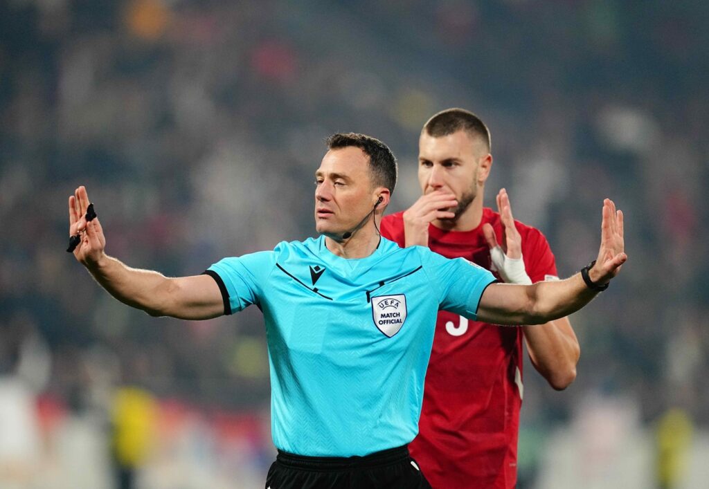 Mnogo će biti povika na suđenje već dobro poznatog arbitra Feliksa Cvajera iz Nemačke. On je pod lupu došao odmah na početku utakmice kada je u 8. minutu propustio da dosudi penal za Srbiju.