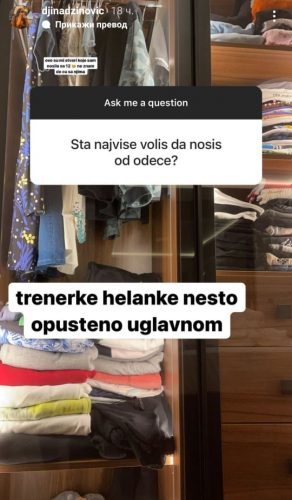 Đina je odgovarala na pitanja pratilaca, koji je u velikom broju prate na društvenim mrežama, a jedno od pitanja bilo je i da pokaže svoj garderober.