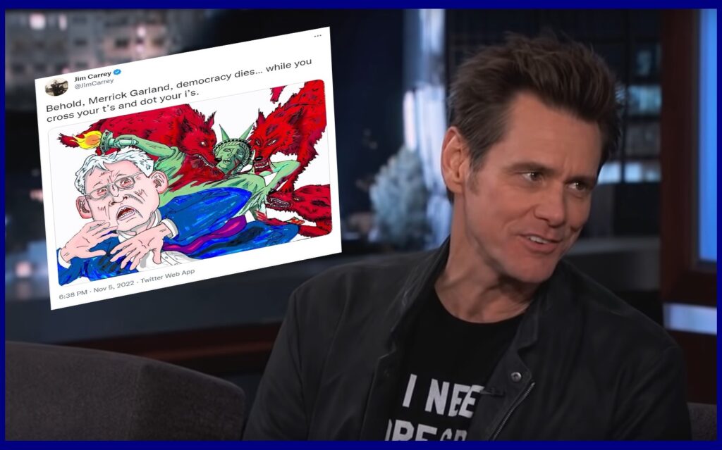 Poput glumca Džona Кjuzaka, koji kaže da Garlandu treba predugo da optuži bivšeg predsednika Donalda Trampa za zločin, i Džim Keri na sličan način optužuje tužioca Garlanda.