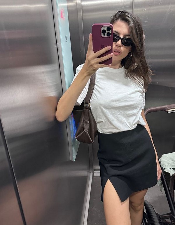 Tako je sada objavila jednu sasvim običnu sliku iz lifta, kada je krenula u šetnju sa sinom Vasilijem. Ali te dve slike zapalile su društvene mreže. Crna mini suknja sa šlicom je svima zapala za oko, a onda su krenuli komentari za belu običnu majcu koja nije bila ispeglana već poprilično izgužvana.