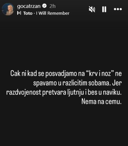 Kako je istakla, ključ dugotrajne ljubavi i međusobnog poštovanja leži u zajedništvu, bez obzira na nesuglasice koje se povremeno pojave.