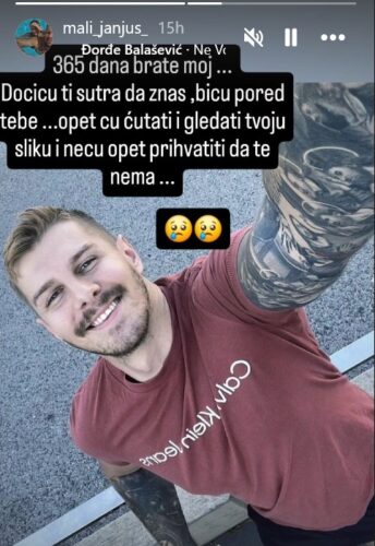 – 365 dana brate moj… Doći ću ti sutra da znaš, biću pored tebe. Opet ću ćutati i gledati tvoju sliku i neću opet prihvatiti da te nema – napisao je Janjuš i postavio uplakani emotikon.