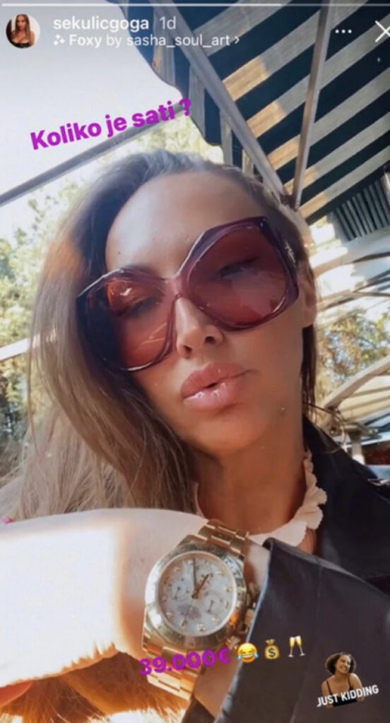 Naime, iako dosta njenih kolega ima finansijskih poteškoća zbog pandemije korona virusa, Goga ne može nikako da se žali, jer na ruci nosi sat koji, kako je napisala, košta neverovatnih 39.000 evra.