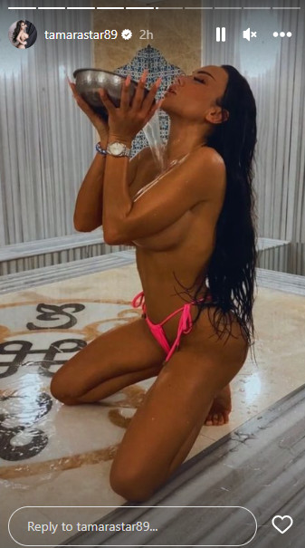 Tamara se uslikala na stolu u luksuznom prostoru, bila je bez grudnjaka i na sebi je imala samo donji deo kupaćeg kostima.
