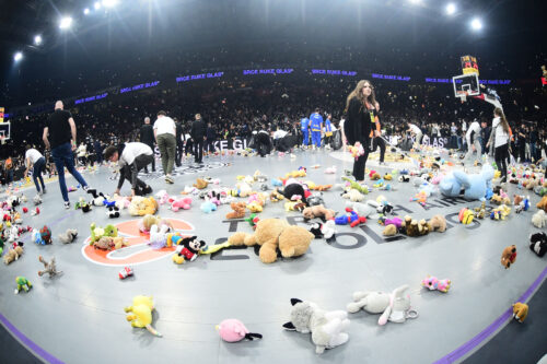 Naime, u momentu pre nego što su košarkaši izašli na teren, sa tribina Arene je poletelo na hiljade plišanih igračaka, dok su u isto vreme Gorbari priredili sjajnu koreografiju, uz šetalicu.