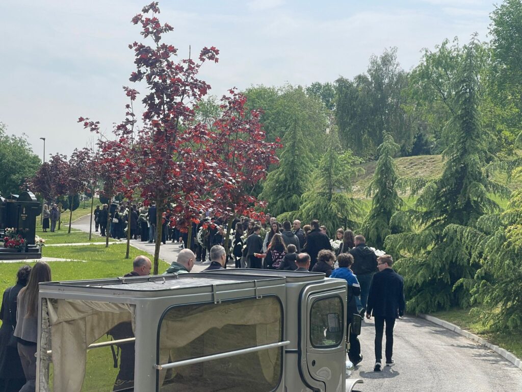Sahrana dečaka A.Č. na groblju Lešće. Opelo je upravo počelo i drže ga dva sveštenika. U kapeli i ispred nje na groblju Lešće više od 500 ljudi došlo je da isprati dečaka A.Č. (14).