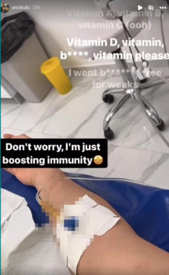 Nije jasno zašto je zabrinula pratioce ovom objavom, jer u opisu videa piše da je to infuzija za imunitet, te da je sve u redu, budući da prima vitamine.