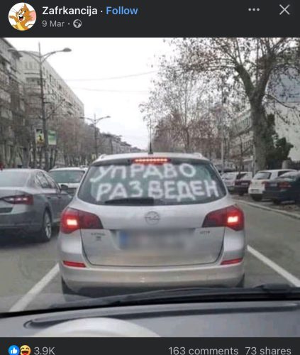 Jedan sugrađanin, očigledno odlučan da svoju novu životnu fazu obeleži javno i duhovito, provozao je automobil sa specijalnom porukom. Ovim povodom, osmesi i komentari prolaznika.