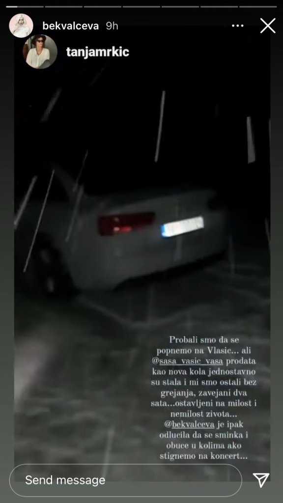 Nataša je s prijateljima muzičarima i sestrom objavila video u kojem se za svaki slučaj šminka, ukoliko stigne na nastup, da bi na kraju pokazala i da su krenuli peške i da će put nastaviti kombijem od prijatelja.