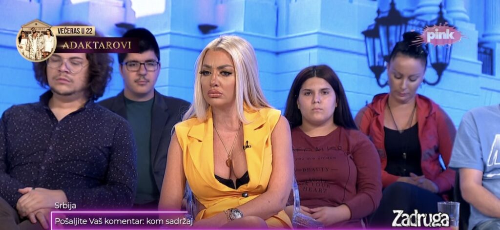 -Je l’ se sećaš one svađe Dejana i Aleksandre kad je bio Matorin rođendan? Kad je Aleksandra se vratila u sobu, bila si u sobi, to je bila velika svađač. Rekla si joj: „Nemoj dozvoliti, pusti neka ide, vidiš da on gleda Dalilu“ – rekla je gledateljka.