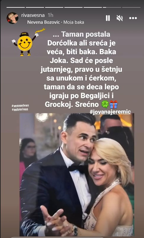 – Taman postala Dorćolka, ali sreća je veća biti baka. Baka Joka. Sad će posle jutarnjeg pravo u šetnju sa unukom i ćerkom, taman da se deca lepo igraju po Begaljici i Grockoj. Srećno…. – napisala je Vesna i tako ismejala voditeljku koja je uz dečka dobila i unuku koja je godište njene ćerke.
