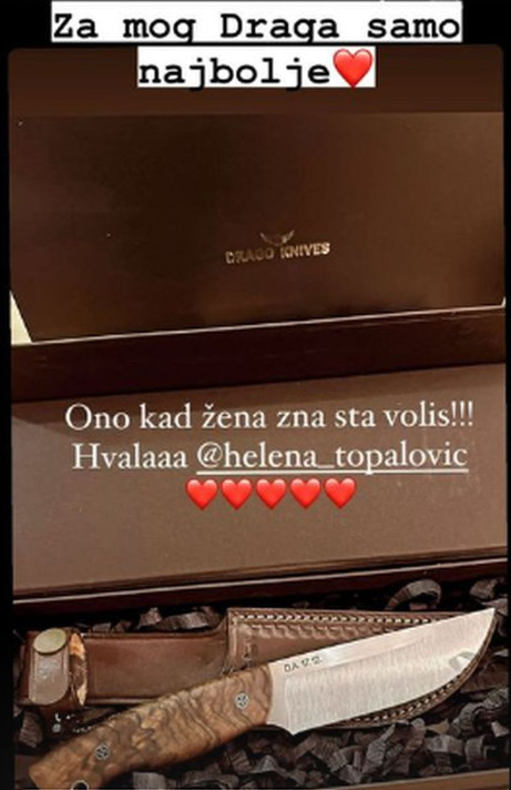 Ovog puta je, međutim, odlučila podeliti poseban trenutak iz njihovog odnosa. Helena je iznenadila Dragana setom noževa, sa njegovim inicijalima ugraviranim na njima. Dragan je oduševljeno podelio poklon na svom Instagram profilu, ističući da ga supruga najbolje poznaje. „Ono kad žena zna šta voli! Hvala“, napisao je u opisu slike.