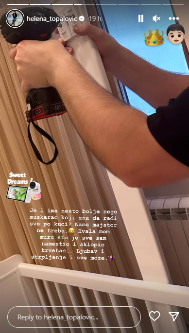 Helena je na svom Instagram profilu objavila kako njen muž sređuje krevetac za njihovu naslednicu.
