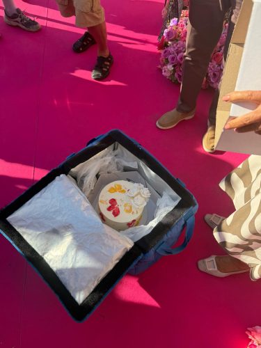 Radiša je sa suprugom zajedno nosio rashladnu torbu, plave boje iz koje je u jednom trenutku izvadio, ništa drugo do tortu.
