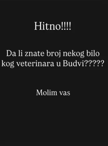 – Hitno. Da li znate broj bilo kog veterinara u Budvi, molim vas – napisala je ona.