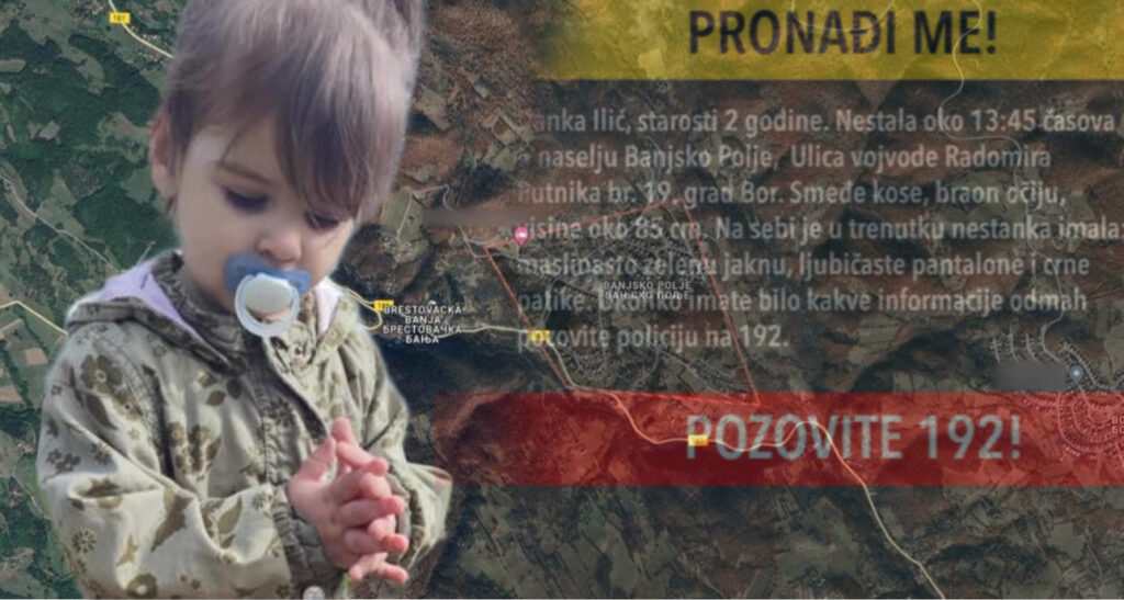 Devojčica Danka Ilić (2) nestala je danas u naselju Banjsko polje. Potraga za devojčicom ulazi u osmi sat i u ovom trenutku nema nikakvih informacija gde bi dete moglo da bude.