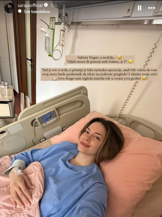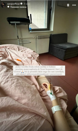 Pevačica Sara Jo na svom Instagram profilu objavila je fotografiju iz bolničkog kreveta, te naglasila da je imala hitnu operaciju.