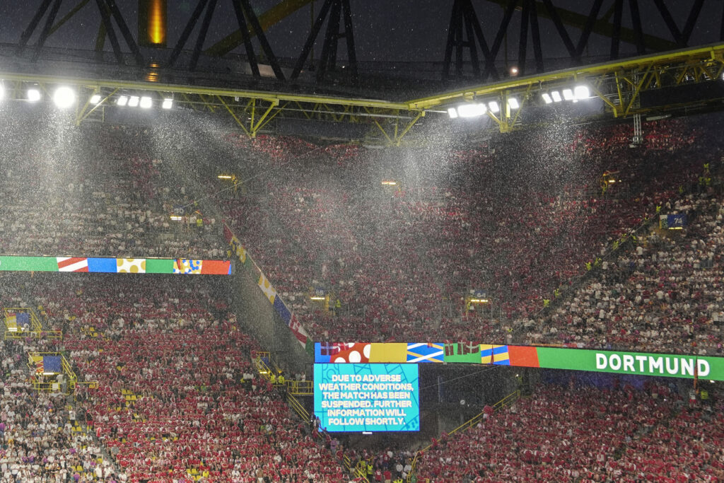 Fudbaleri Nemačke i Danske morali su u svlačionicu jer je meč osmine finala Evropskog prvenstva morao da bude prekinut zbog grmljavine.