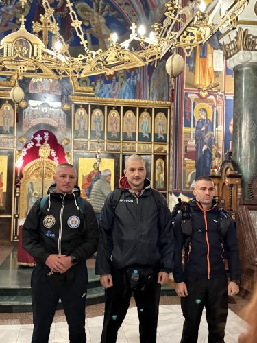 Pripadnik SAJ-a Marko Marinković, pripadnik PU Prijepolje Vladimir Penezić i pripadnik SBPOK Beograd Strahinja Bjelić se trenutno nalaze u Severnoj Makedoniji. Prema planu svog podviga, 23. oktobra trebalo bi da stignu u Uranopolis gde će se narednog jutra ukrcati na brod koji će ih odvesti do Svete gore.