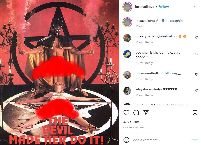 Sodoma i Gomora na delu! Satanizam. Služenje đavolu. Zapadna idiokratija! Povrh toga, otkriveno je kako je Lotta “bacila lajkove” na fotografije na kojima su bila deca u nevolji, ropstvu i fotografije slične prirode.