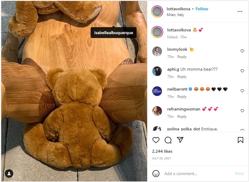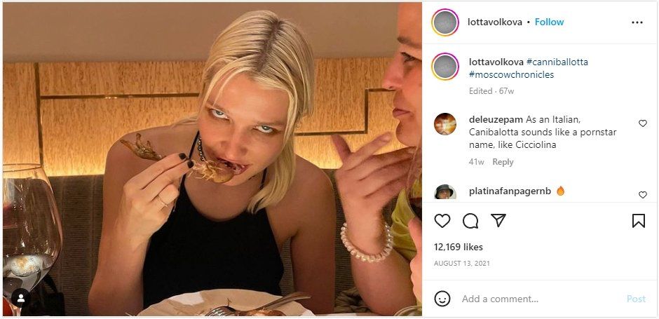 Volkova je označila anonimnog Instagrammera u objavi. Taj je Instagram nalog postao poznat po mračnoj satiri.
