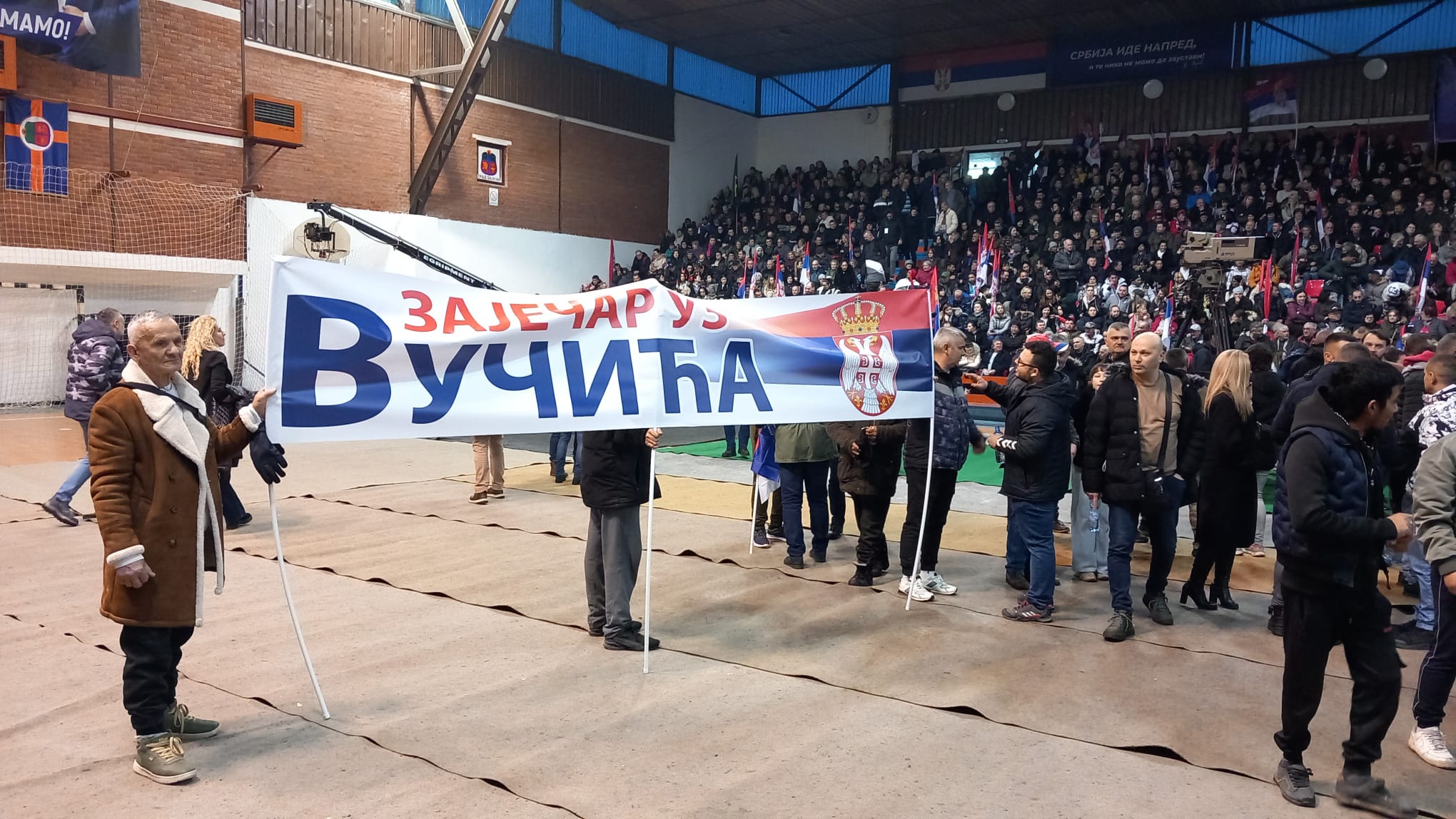 Masa ljudi se okupila u sportskom centru Kraljevica u Zaječaru gde će se obratiti okupljenima predsednik Srbije.