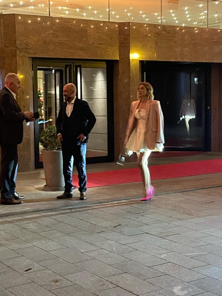 Pridružila se i pevačica Marina Tadić u elegantnoj bež haljini sa roze cipelama, dok je preko nosila sako.