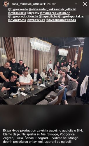 “Ekipa Hype production je završila uspešno audicije u BIH. Idemo dalje. Na spisku su Niš, Skoplje, Podgorica, Zagreb, Tuzla, Šabac, Beograd…. Vidimo se! Mnogo dobrih pevača su prijavljeni. Izabrani su najbolji“, dodao je Saša Mirković.