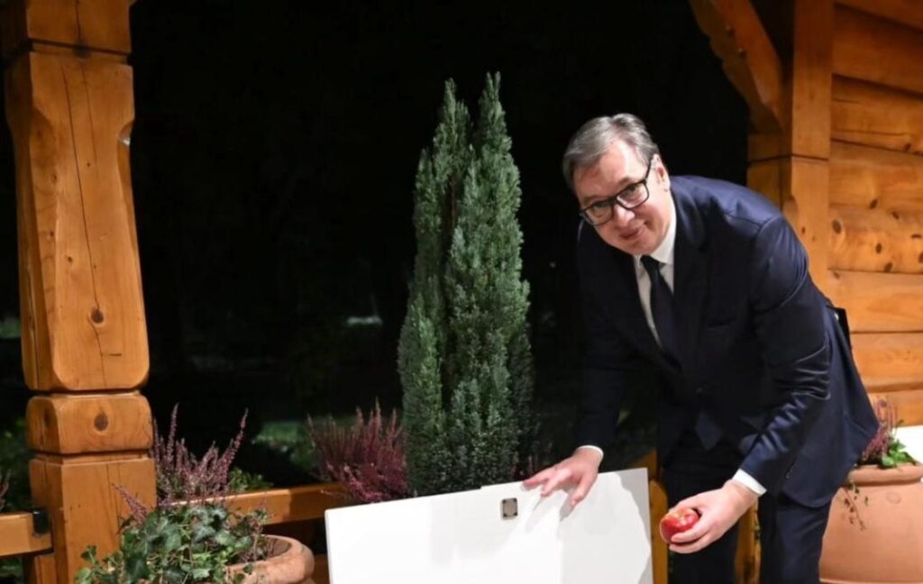Vučić se oglasio na svom Instagram profilu buducnostsrbije gde je pokazao poklon koji je dobio od Tokajeva, pa dodao da i mi jabuku za trku imamo.