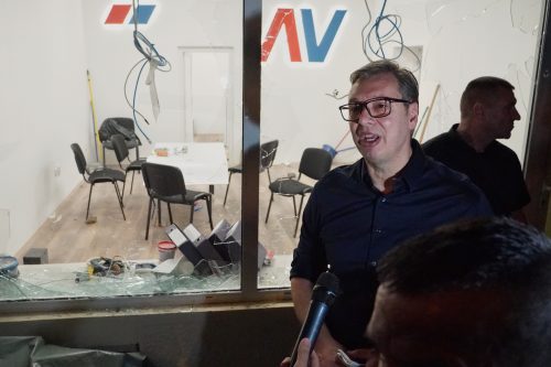 Predsednik Srbije, Aleksandar Vučić, obišao je prostorije SNS na Paliluli koje su nasilnici razbili.